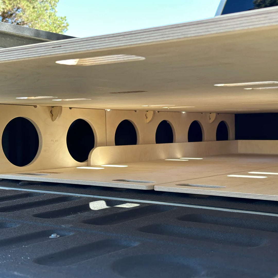 The original BamBed was built for truck owners who wanted a solid, removable platform without drilling into their bed or losing access to storage. Simple, strong, and easy to install it sets the standard for modular truck bed systems.
