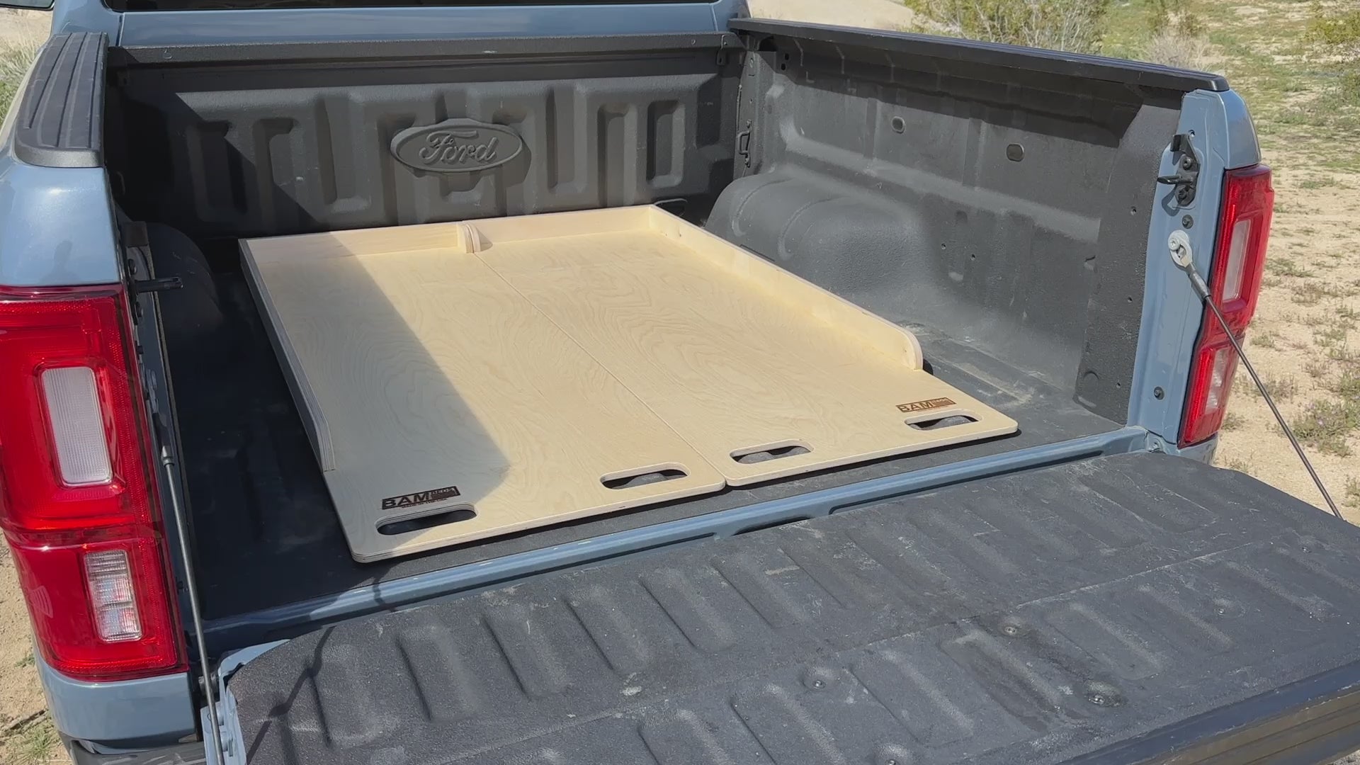 The original BamBed was built for truck owners who wanted a solid, removable platform without drilling into their bed or losing access to storage. Simple, strong, and easy to install it sets the standard for modular truck bed systems.