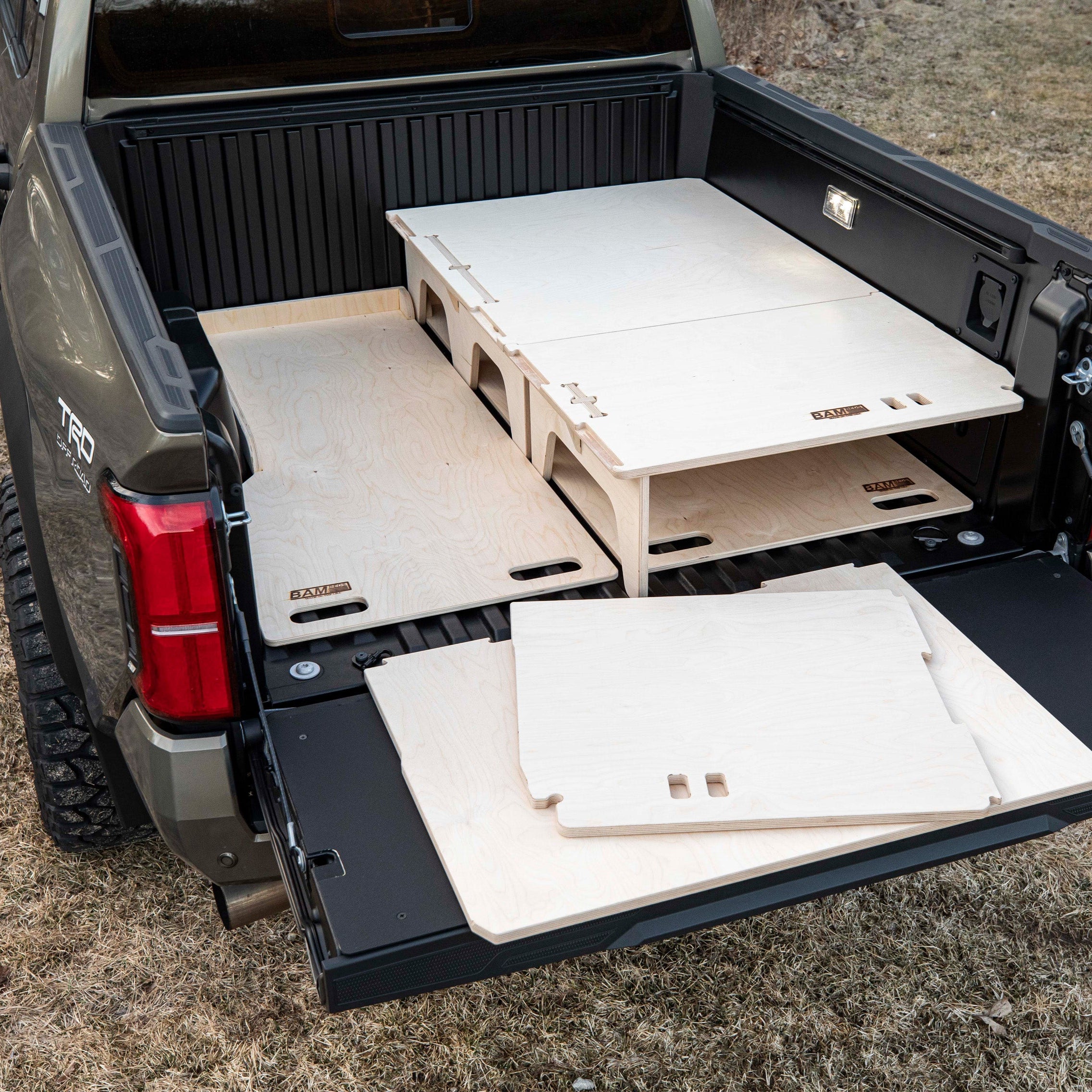 Built for Tacoma owners who want a strong, removable platform without drilling or sacrificing storage. Simple, sturdy, and easy to install setting the bar for modular truck bed solutions.