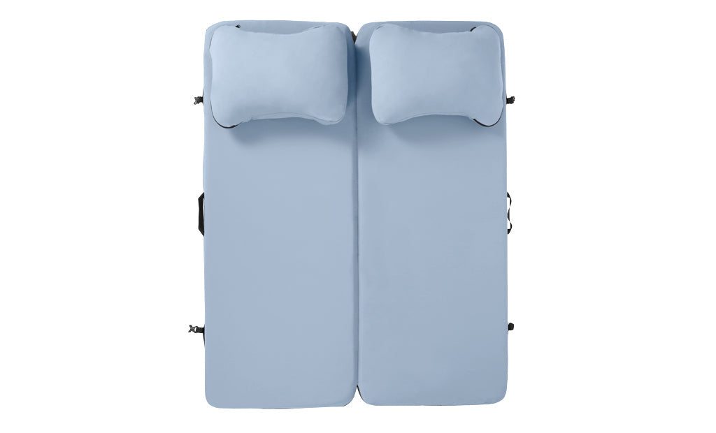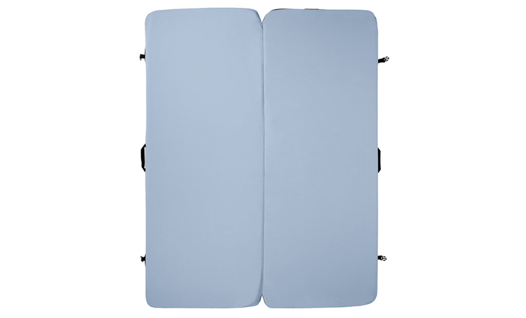 The Dually, our two-person camping mattress pad, was designed for flat and dry sleeping spaces found in truck bed campers, rooftop tent pop-ups, and tents. Dually Long 50"x78", Dually Wide 60"x72", Dually Short 50"x64" & Dually Queen 78"x60".